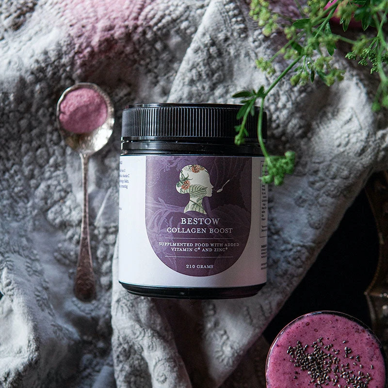 Transform your skin from the inside out with Bestow Collagen Boost. This concentrated blend is formulated with hydrolysed collagen peptides, Vitamin C and zinc. With a subtle taste of raspberry and naturally sweetened with monk fruit, this daily powder can be easily mixed into water or added to your favourite smoothie.