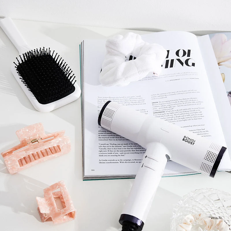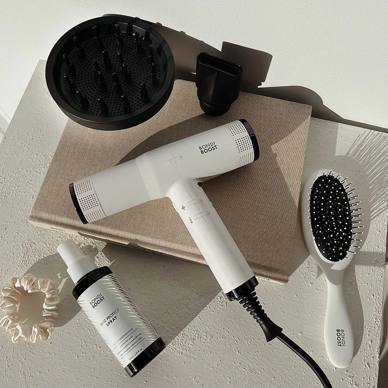 Enjoy 4X fast drying with the BondiBoost Sonic Dryer. This ultra-lightweight professional hair dryer combines Advanced Ion Technology with 4 heat & 3 speed settings to effortlessly dry and style any hair type and texture. Enhanced with a cool shot function to set your style after you dry, and elevated with a smart memory function to store your preferred heat and speed settings, the Sonic Hair Dryer is your secret weapon for creating salon-worthy styles in a flash.