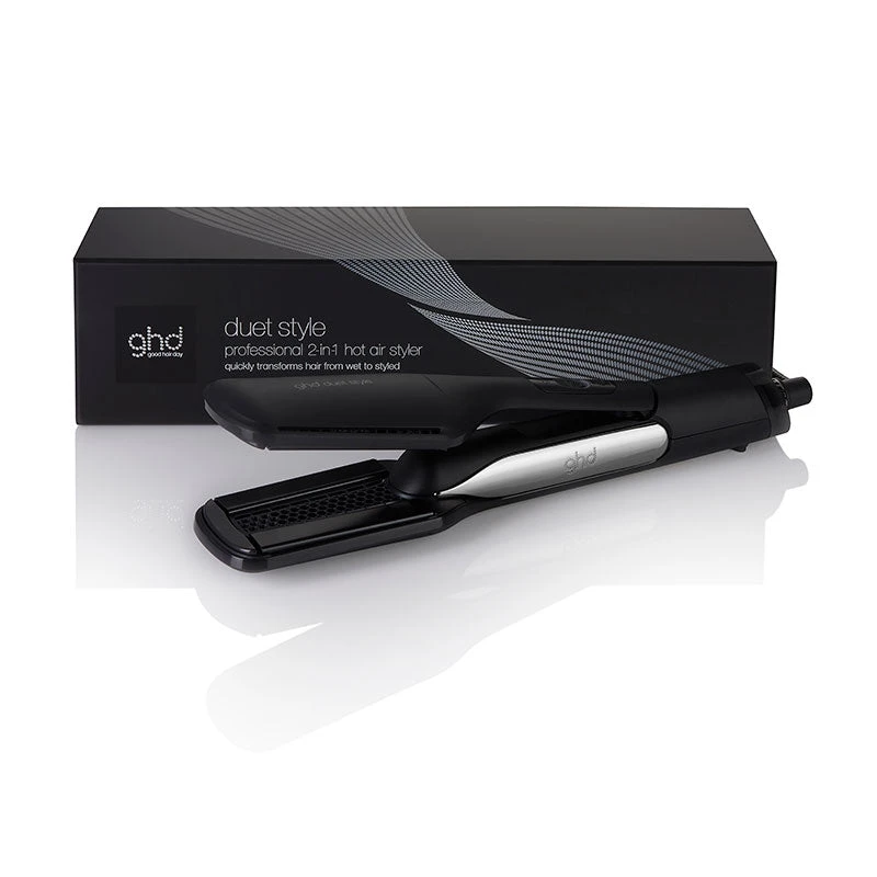 It’s styling but not as you know it. Introducing the ghd Duet Style – a first-of-its-kind, revolutionary 2-in-1 hot air styler that transforms hair from wet to styled with no damage, sizzling or burning smell. Suitable for all hair types, the duet style is sure to elevate your styling routine. The versatile styling tool allows you to create salon-worthy results without compromising on your hair’s health. Featuring Air-fusion technology along with a set of 4 smart plates that work in harmony to deliver and maintain the optimal styling temperature from root to tip, this innovative styler helps to transform your locks, delivering instant frizz-free results with 2x more shine. Each advanced floating plate is finished with an ultra-gloss coating to glide over hair smoothly and seamlessly from root to tip.