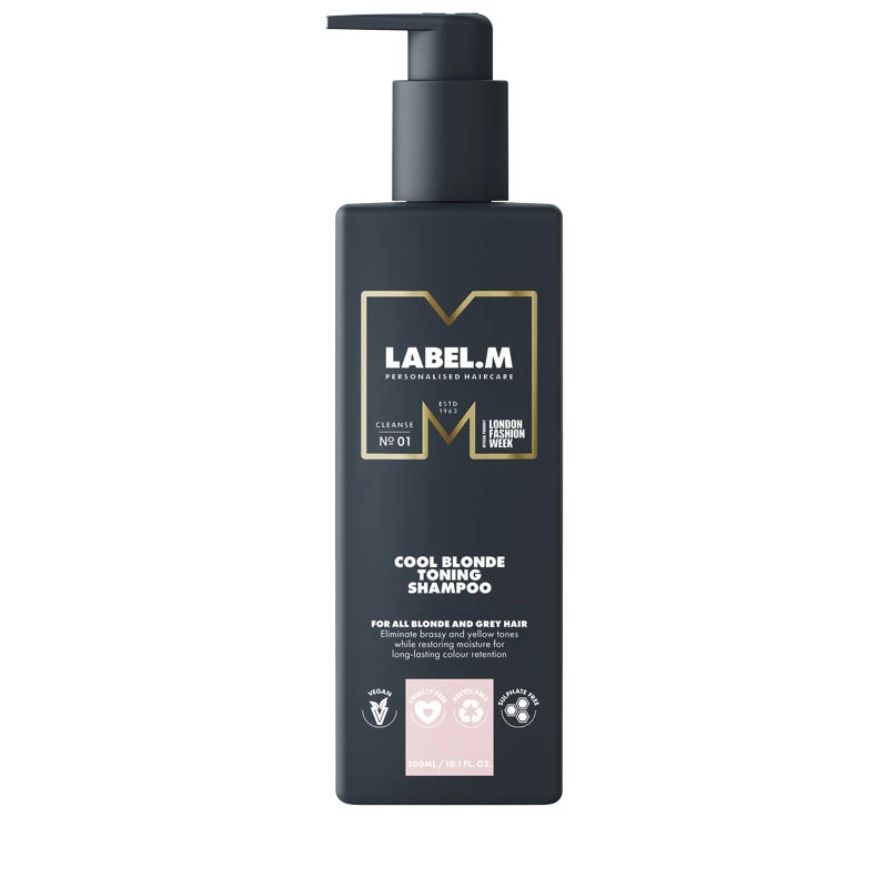 This LABEL.M Cool Blonde Toning Shampoo will leave your hair looking brighter and more vibrant by expertly eliminating brassy yellow tones to refresh your colour. Our exclusive Violet Botanical Complex and Supreme Colour Blast Technology enhance clean tones while improving hydration, manageability and ensuring long-lasting colour retention. The sulfate-free formulation ensures hair softness with improved manageability as the botanical extracts of purple carrots, purple sweet potato and blueberries illuminate highlights. Ideal for blonde and grey hair.