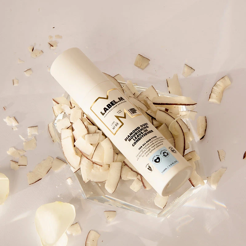LABEL.M Diamond Dust Nourishing Leave-In Conditioner offers luxuriously deep hydration as the formula is enriched with real Microfine Diamonds, Coconut and White Rose Petal oils. Boasting the exclusive Enviroshield Technology to shield hair from heat styling, humidity and UV rays this densifying wearable conditioner helps achieve optimal radiance and a smooth, glowing finish. Ideal for all hair types.