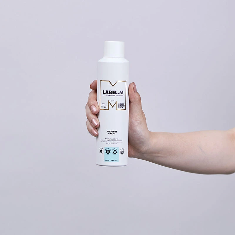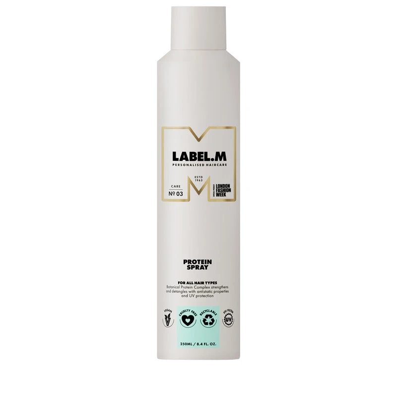 As a superior detangling primer, LABEL.M Protein Spray provides transformative, vitamin-enriched care for all hair types. Enriched with an exclusive Power Peptide Complex plus Botanical Protein Complex to strengthen and regulate moisture levels, this easy to use spray improves hair’s elasticity while providing antistatic properties and UV protection. Enjoy smoother and more manageable hair with improved benefits from your chosen styling product as this lightweight primer strengthens as you style. Ideal for all hair types.