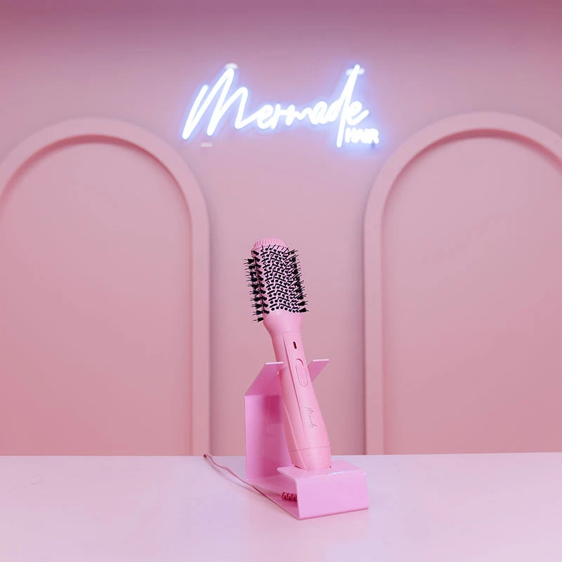 Bring the salon to you with the Mermade Hair Blow Dry Brush. Combining the power of a hair dryer with the ease of a round brush, this innovative styling tool will cut your beauty prep time in half and makes light work of mastering the perfect salon blowout. Featuring tangle-free bristles and ionic technology, this super-lightweight blow dry brush is suitable for all hair types and lengths.