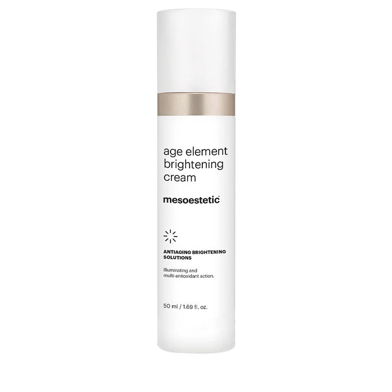 Mesoestetic Age Element Brightening Cream 50ml is an innovative cream that helps to treat the first signs of aging, giving your face a luminous boost. Its antioxidant action delays premature aging, revitalizing the skin and providing a more hydrated and uniform appearance. This unique formula contains a combination of active ingredients that work together to even out skin tone, reduce the appearance of fine lines and wrinkles, and protect against environmental damage. The result is a visibly youthful complexion that feels soft, smooth, and healthy. Suitable for all skin types.