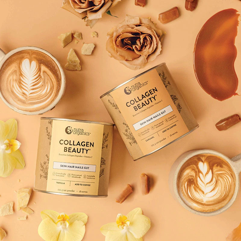 Enjoy optimal skin, hair, nail and gut health with Nutra Organics Collagen Beauty in Vanilla. Low in sugar, soft, creamy and a delicious way to enjoy the benefits of Collagen Beauty, this all-natural formula is made with only pure wholefood ingredients and contains Verisol® Bioactive Collagen Peptides & Vitamin C. The perfect addition to your morning coffee or favourite hot drink, this skin-loving blend not only tastes delicious, but also helps to reduce the appearance of skin wrinkles, smooths fine lines, and supports healthy hair & nails.