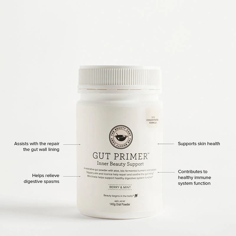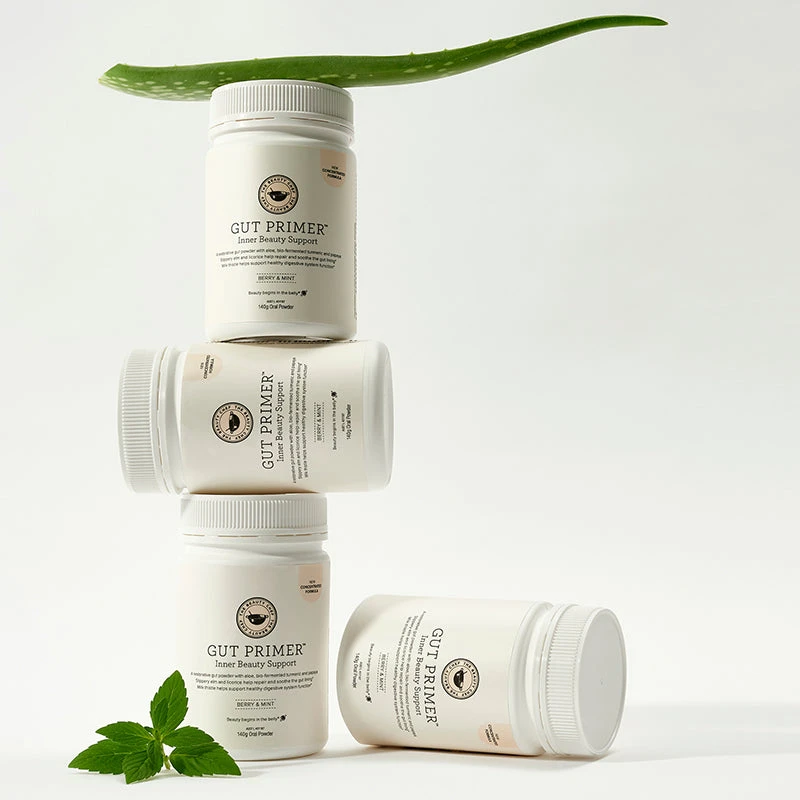 Now supercharged with an even more concentrated formula. This medicinal superfood powder combines nutrient-rich bio-fermented papaya, peppermint, aloe vera, turmeric and L-glutamine to soothe internal inflammation and restore the health of the gut. The addition of slippery elm and licorice root further restore the gut wall as used in herbal medicine, to support gastrointestinal functions which all leads to more glowing and radiantly healthy skin from within. When the gut is compromised, immune responses can trigger inflammation and flare ups that manifest in a number of skin and overall health issues. This repairing and soothing formulation helps to calm and strengthen the lining of the gut enhancing liver function, to further promote optimal digestion for skin clarity.