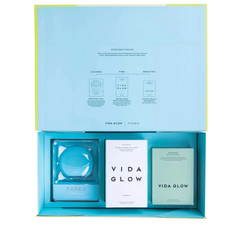 Take your skin care to the next level and achieve glowing skin from the inside out with this limited edition Vida Glow X FOREO collaboration. Clinically proven beauty tech meets